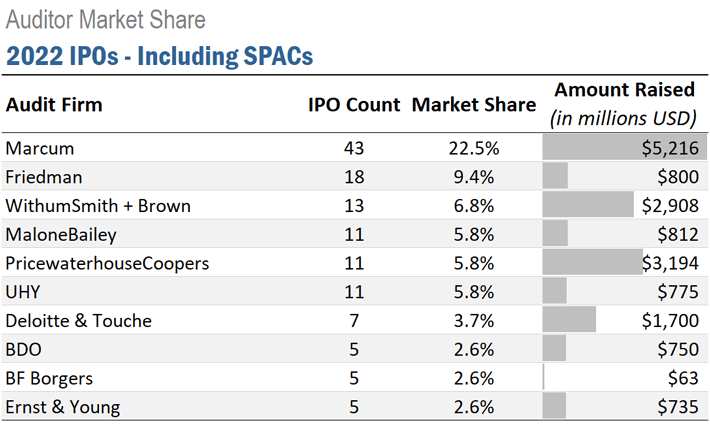 2022 IPOs: auditor market share analysis