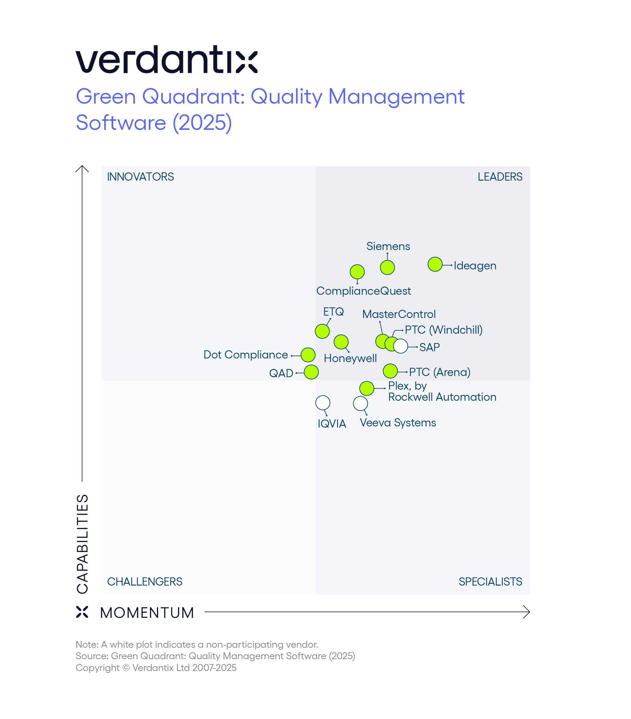 Get independent, expert guidance with the Verdantix Green Quadrant: Quality Management Software (2025) report.